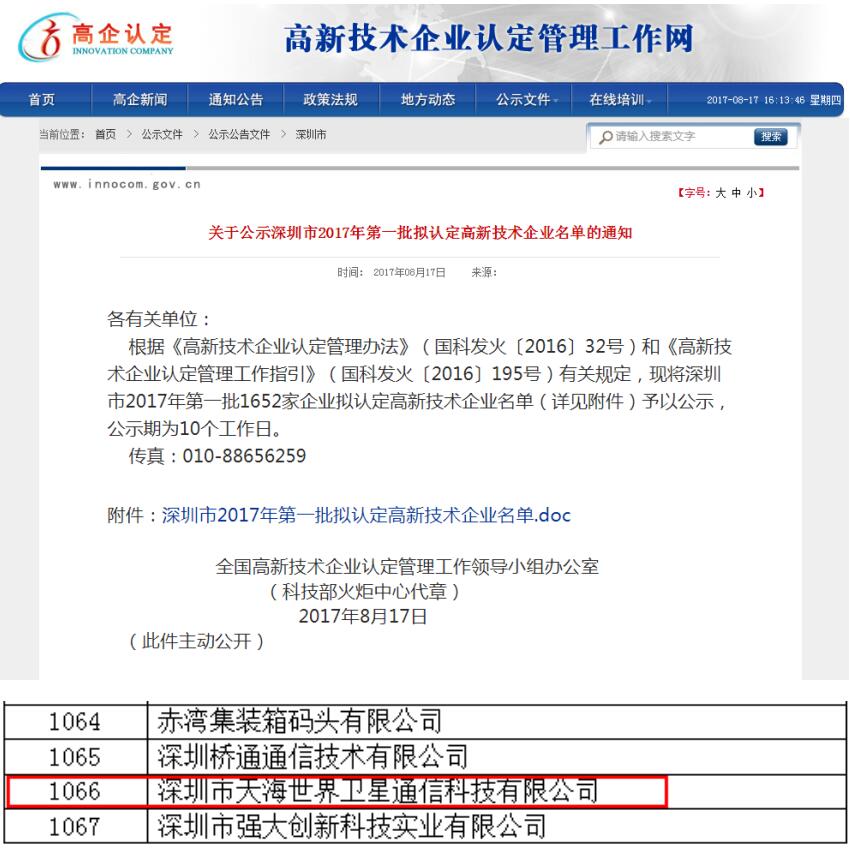 8月17日,國(guó)家高新技術(shù)企業(yè)認(rèn)定管理工作網(wǎng)對(duì)外公布了“深圳市2017年第一批認(rèn)定高新技術(shù)企業(yè)”,我司作為綜合性高新科技企業(yè),榮登榜單,可喜可賀!